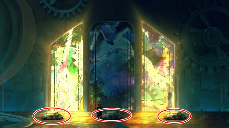 ステンドグラスがあるリングは正しい順番でエネルギーを打ち込む必要がある。
