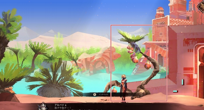 樹木を調べて果実を回収 → 自動で大峡谷へ移動。