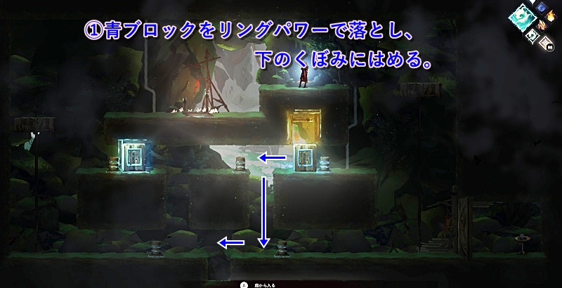風リングを拾った場所の箱を風リングで動かし、左側に進む。