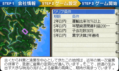 紀勢本線の紀伊長島~熊野市とその周辺がモデルです。紀勢本線(マップ内では記勢本線)を開通させるという理念のマップです。