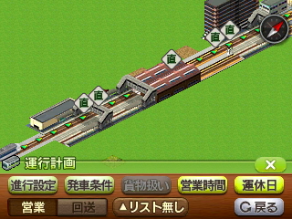 列車を同じ線路から隣町に入れ、隣町を同時に発車するよう運行設定を行う。