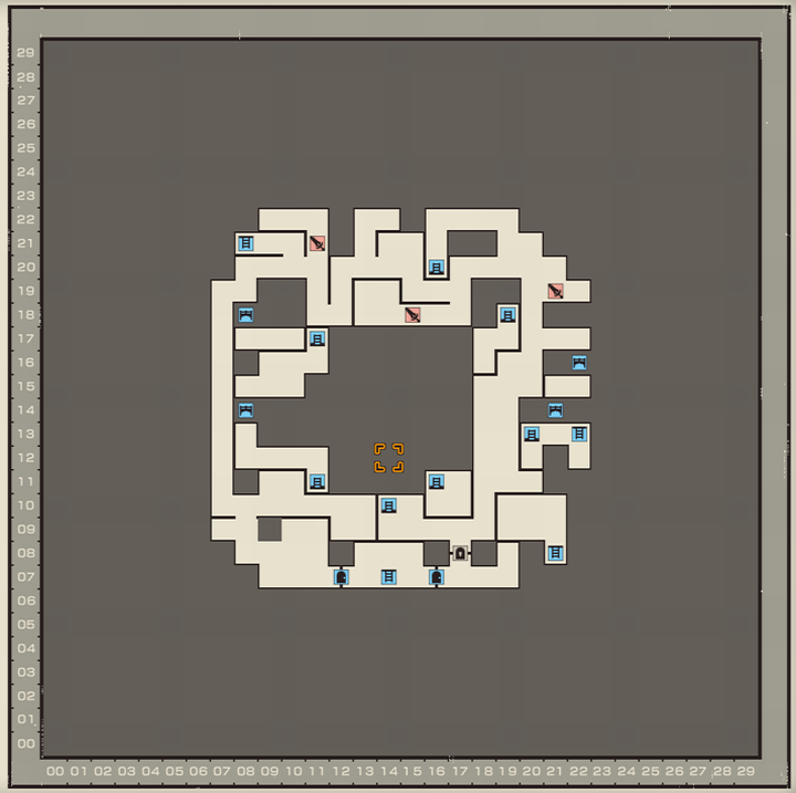 - X12Y16:青ルキ(最下層ハシゴ経由)